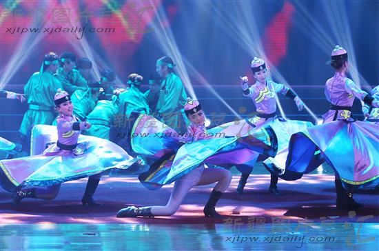 2014年2月13日,新疆阿勒泰市,演员在表演蒙古族舞蹈。