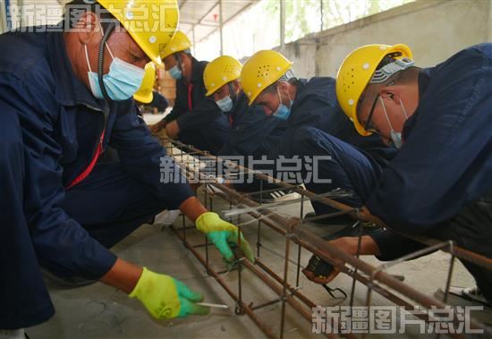 2022年5月29日,当地青年在乌什县依麻木镇玉斯屯克和田村乌什县技工学校村级教学点进行建筑技能实操教学。