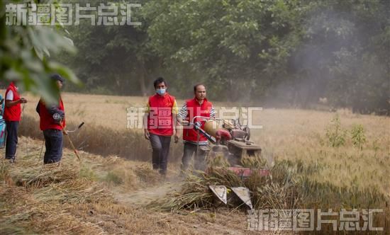 关键字:和田地区 洛浦县 多鲁乡 农民 村民 小麦 丰收 三夏 田间地头 红马甲 志愿者 收割机 抢收小麦 颗粒归仓 冬小麦