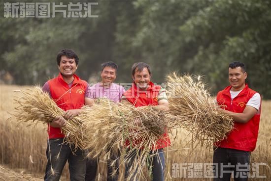 关键字:和田地区 洛浦县 多鲁乡 农民 村民 小麦 丰收 三夏 田间地头 红马甲 志愿者 收割机 抢收小麦 颗粒归仓 冬小麦