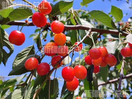 2022年6月6日,察布查尔锡伯自治县海努克镇向阳村采摘园樱桃挂满枝头。