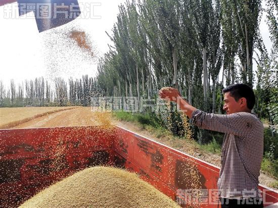 关键字:阿克苏地区 阿瓦提县 阿依巴格镇 幸福村 村民 收割机 小麦 丰收 颗粒归仓