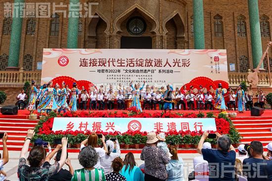 6月11日是我国第17个“文化和自然遗产日”。当日,哈密市2022年“文化和自然遗产日”非物质文化遗产展演活动在哈密市文博院文化广场举行,哈密木卡姆、维吾尔族赛乃姆、新疆曲子、回族花儿、哈萨克族阿肯弹唱等多项非物质文化遗产项目进行了集中展演,让市民了解非遗,近距离感受传统文化的魅力。