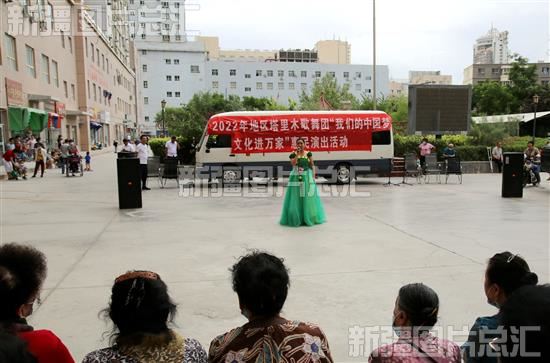当日,阿克苏地区塔里木歌舞团“我们的中国梦——文化进万家”巡回演出走进阿克苏市兰干街道前进社区上东国际小区为各族群众带来了一场歌舞小品表演,精彩文艺节目,受到群众的欢迎。