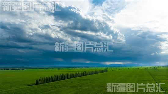 俯瞰位于博乐市小营盘镇托里布拉格东村美丽的乡村画卷(2022年6月20日无人机拍摄)。