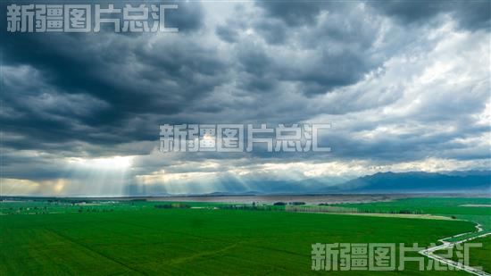 俯瞰位于博乐市小营盘镇托里布拉格东村美丽的乡村画卷(2022年6月20日无人机拍摄)。