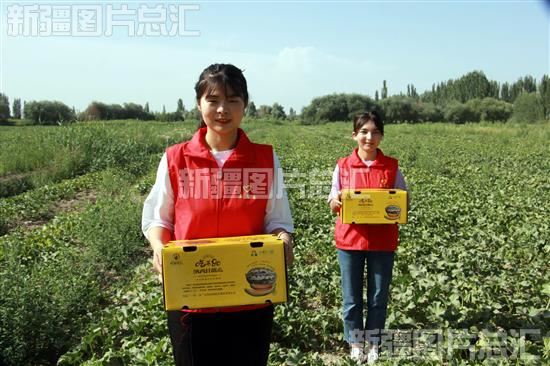 2022年6月20日,党员志愿者在阿克苏地区阿瓦提县塔木托格拉克镇库吾尔尕村纳西甘种植基地搬运甜瓜。