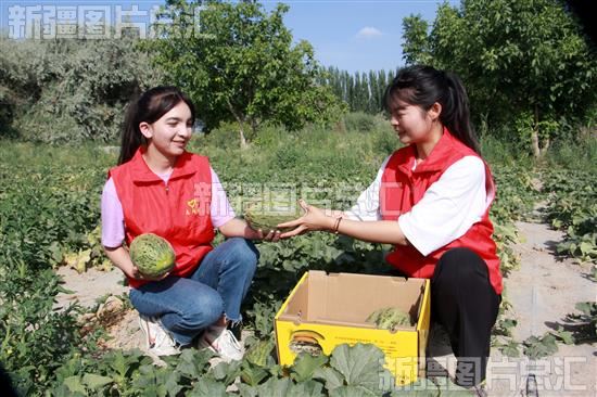 2022年6月20日,党员志愿者在阿瓦提县塔木托格拉克镇库吾尔尕村纳西甘甜瓜种植基地采摘纳西甘甜瓜。