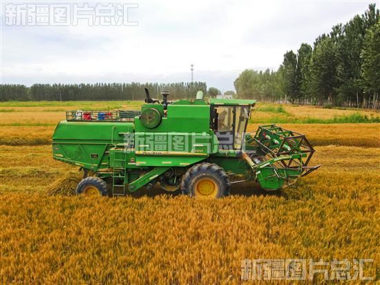关键字:阿克苏地区 温宿县 克孜勒镇 古洛克村 村民 抢抓农时 联合收割机 收割 小麦 颗粒归仓