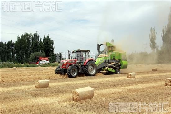 关键字:阿克苏地区 阿瓦提县 阿依巴格镇 农民 麦田 小麦 秸秆 打包机 麦秆回收 牲畜 饲料 储备