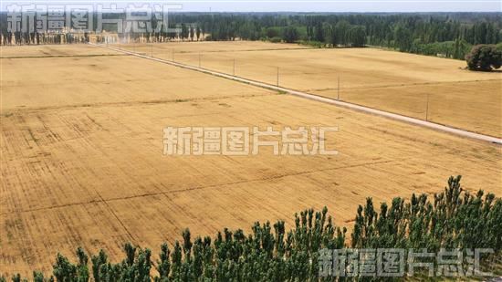 关键字:阿克苏地区 沙雅县 农业 种植基地 大型机械 收割 小麦 粮食 丰收 颗粒归仓