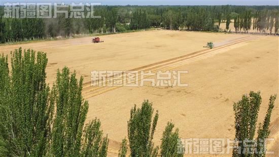 关键字:阿克苏地区 沙雅县 农业 种植基地 大型机械 收割 小麦 粮食 丰收 颗粒归仓