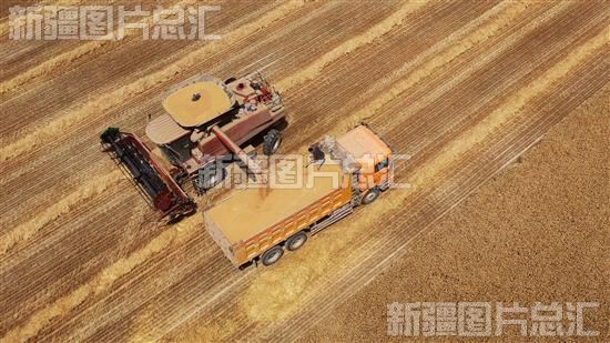 关键字:阿克苏地区 沙雅县 农业 种植基地 大型机械 收割 小麦 粮食 丰收 颗粒归仓