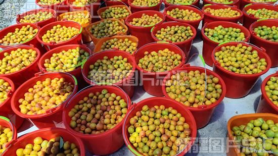 2022年6月28日,察布查尔锡伯自治县海努克镇琼布拉克村和切吉村联合种植的千亩树上干杏园里准备销售的杏子。