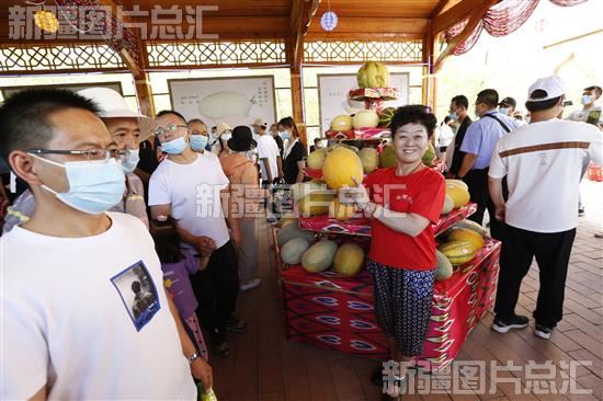 关键字:新疆 哈密市 哈密贡瓜园 哈密瓜节 甜蜜之旅 游客 市民 观赏 参观 哈密瓜 演员 表演 文艺节目