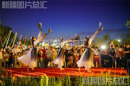 当日,在新疆生产建设兵团第十二师头屯河谷森林公园汉唐文化主题街区,一场汉唐歌舞秀吸引了众多游人前来观赏。皮影戏、汉唐歌舞秀让人如醉如痴,整个演出精彩纷呈,让游客度过了一个难忘的仲夏夜。