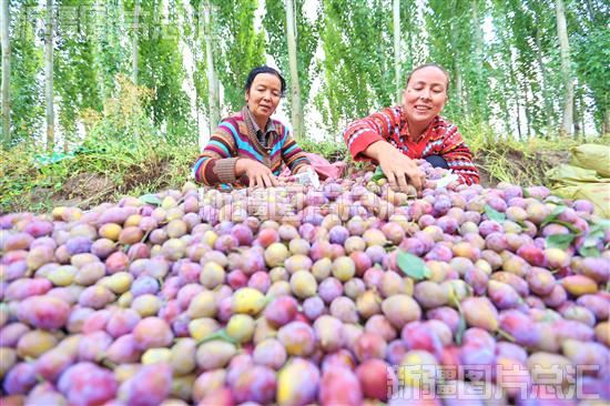 2022年8月26日,库车市玉奇吾斯塘乡代尔瓦扎亚村村民在新梅种植基地分拣新梅。