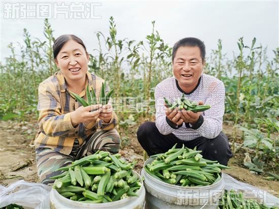 2022年8月26日,沙湾市乌兰乌苏镇头浮新村村民种植的秋葵喜获丰收。