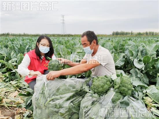 2022年8月26日,沙湾市市场监督管理局驻乌兰乌苏镇头浮新村“访惠聚”工作队队员帮助村民采收西蓝花。