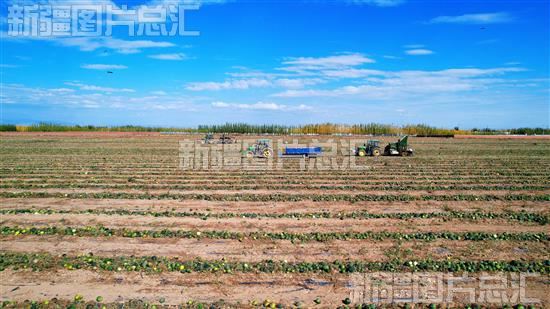 2022年8月25日,阿勒泰市切尔克齐乡克孜勒喀巴克村村民在采收打瓜。今年,阿勒泰市切尔克齐乡加大种植业结构调整力度,积极鼓励农民扩大特色经济作物种植面积,全乡种植的打瓜喜获丰收。