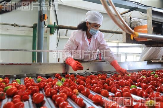 关键字:巴音郭楞蒙古自治州 巴州 博湖县 红禾峰番茄制品有限公司 番茄酱厂 番茄 红色素 番茄种植 企业生产 员工 生产车间 作业 红色产业