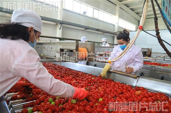 关键字:巴音郭楞蒙古自治州 巴州 博湖县 红禾峰番茄制品有限公司 番茄酱厂 番茄 红色素 番茄种植 企业生产 员工 生产车间 作业 红色产业
