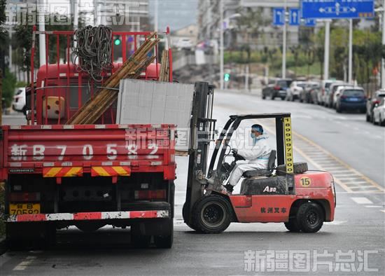 2022年9月12日,工作人员在乌鲁木齐市高新区(新市区)四平路一处工地卸载建筑材料。