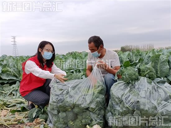 2022年9月20日,乌兰乌苏镇志愿者帮助头浮新村村民金玉龙采收西兰花。