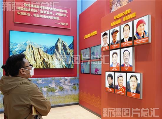 2022年10月4日,观众在“奋进新时代”主题成就展新疆单元“英模墙”前驻足。10年来,全区上下各行各业涌现出一大批可歌可泣的英雄模范,这些英模人物就是其中的典型代表。