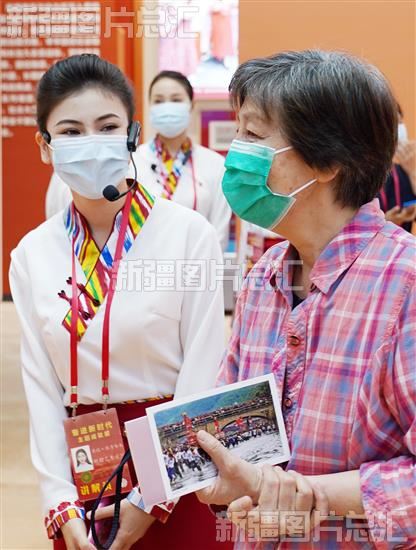 关键字:北京 新疆 北京展览馆 “奋进新时代”主题成就展 新疆单元 展会 成就展 小石榴讲解员 讲解员 讲解 参观者 观众 观展 农民画 交流