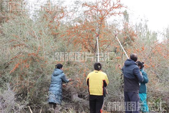 关键字:阿克苏地区 乌什县 奥特贝希乡 色日克阿热勒村 村民 种植户 沙棘 沙棘果 挂满枝头 村民 采摘 丰收 林果业