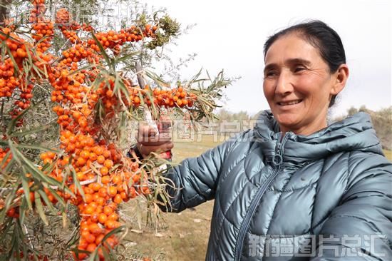 关键字:阿克苏地区 乌什县 奥特贝希乡 色日克阿热勒村 村民 种植户 沙棘 沙棘果 挂满枝头 村民 采摘 丰收 林果业