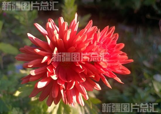 2022年10月8日,沙湾市桃园小区,当阳光洒在菊花上时,花瓣像是镀上了一层金。