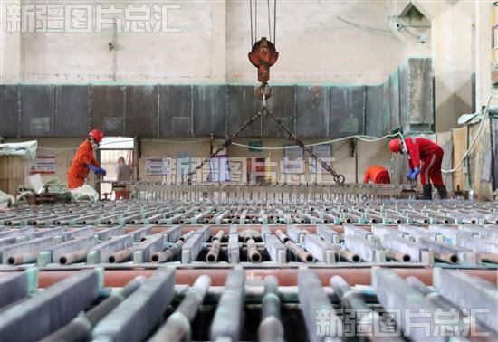 2022年10月11日,工人在新疆新鑫矿业股份有限公司阜康冶炼厂镍车间作业。