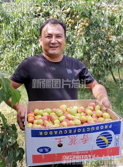 2022年6月9日,在阿瓦提县阿依巴格镇玉斯屯克阿依库勒村,果农在装运芒果杏。包良廷 摄