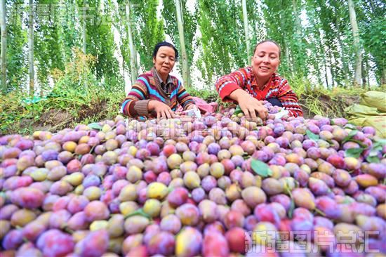 2022年8月26日,库车市玉奇吾斯塘乡代尔瓦扎亚村村民在新梅种植基地分拣新梅。吴乐 摄