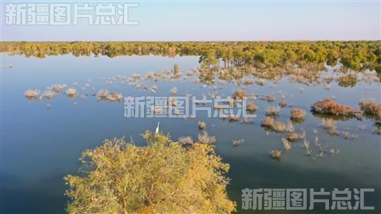 秋日的两岸胡杨渐渐变黄,河水、蓝天、胡杨构成了一幅美丽的生态画卷。 塔里木河下游实施生态输水有效遏制了下游生态严重退化的局面,水区地下水水位抬升、水质好转,动植物物种和数量不断增加。
