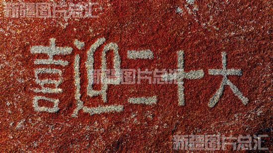 2022年10月13日,在博乐市达勒特镇乌兰布呼村,党员志愿者用红辣椒组成“喜迎二十大”字样,表达丰收的喜悦,迎接党的二十大胜利召开。