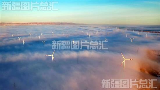 2021年5月4日,云雾中的布尔津县风电场。图片由阿勒泰地委宣传部提供
