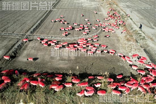 2022年10月18日,新疆生产建设兵团第二师22团羊群在觅食(无人机拍摄)。