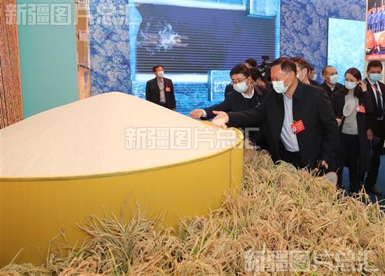 展览设序厅、中央综合展区、地方展区、展望展区、室外展区和互动展区6个展区,面积达3万平方米。这是代表们在新疆单元参观。