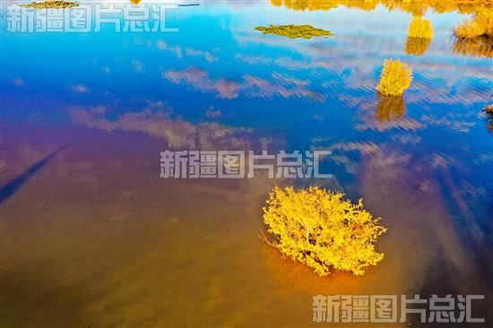 2022年10月19日,呼图壁县小海子湿地五彩斑斓,美景如画。