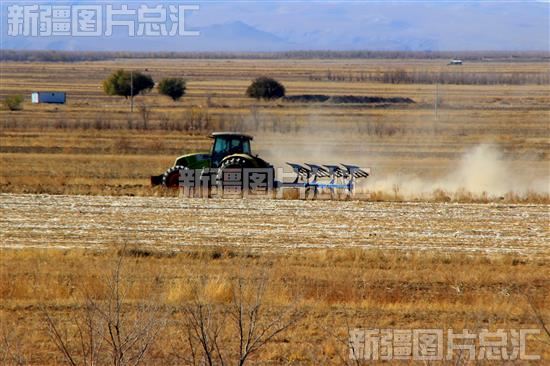 2022年10月25日,裕民县哈拉布拉乡霍斯哈巴克村村民驾驶农机进行秋翻整地作业。