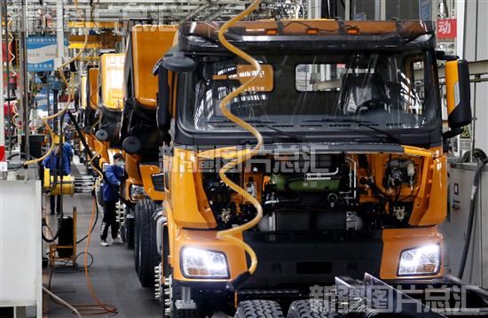 2022年10月11日,位于乌鲁木齐经开区(头屯河区)的陕汽新疆汽车有限公司总装车间,工作人员在有序生产、保障交付。