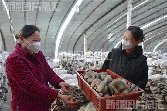 2022年10月26日,沙湾市发展和改革委员会驻大泉乡大泉村“访惠聚”工作队队员帮助菜农采摘蘑菇。