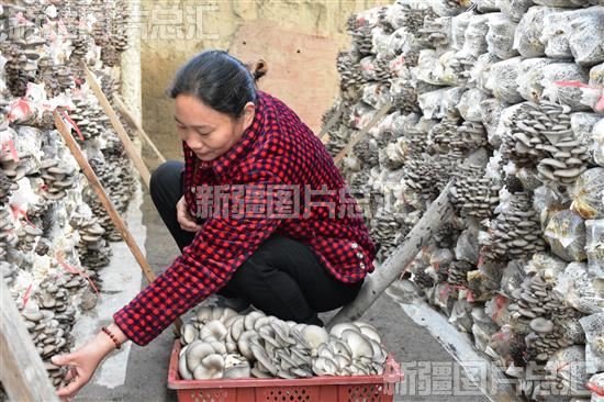 2022年10月26日,沙湾市大泉乡大泉村村民韩丹丹在采摘蘑菇。