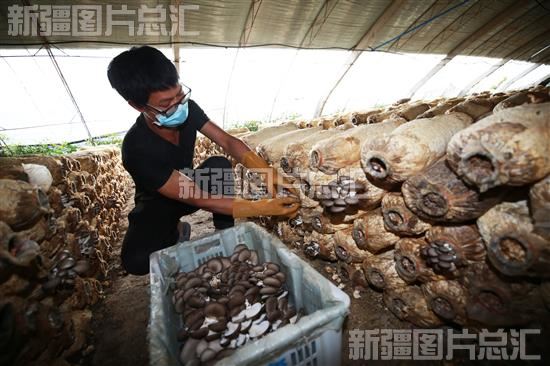 2022年10月12日,新疆生产建设兵团第三师41团草湖镇良种连蘑菇种植户在采摘蘑菇。