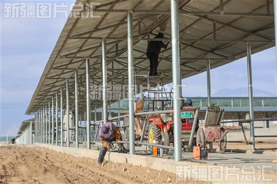 关键字:博尔塔拉蒙古自治州 博州 博乐市 小营盘镇 明格陶勒哈村 招商引资 企业 养殖园区 工人 施工 养殖产业 转型升级 提质增效