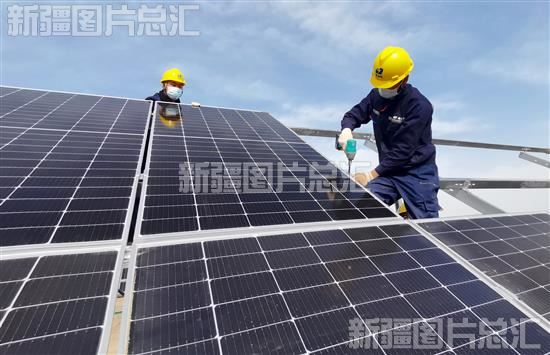关键字:喀什地区 巴楚县 粤水电 新能源 清洁能源 光储 发电 项目 建设 新疆能源公司 施工人员 安装 光伏 组件
