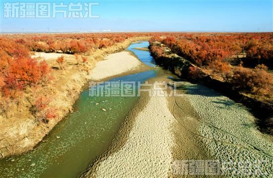 位于新疆生产建设兵团第二师22团的一处湿地,一株株红柳印红了大地,呈现出一派秋日美丽景象(2022年11月4日无人机拍摄)。